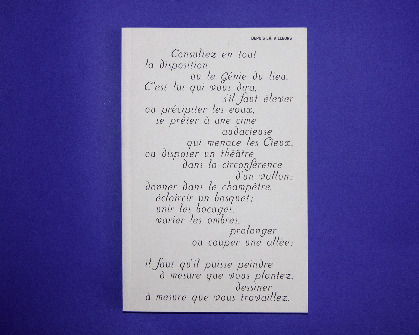 Conception de la couverture du livre "Depuis là, ailleurs", présenté par l'atelier Genus loci (Isdat) à la biennale Exemplaires 2019 à Rennes.