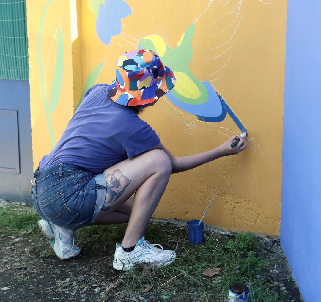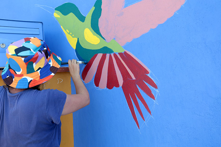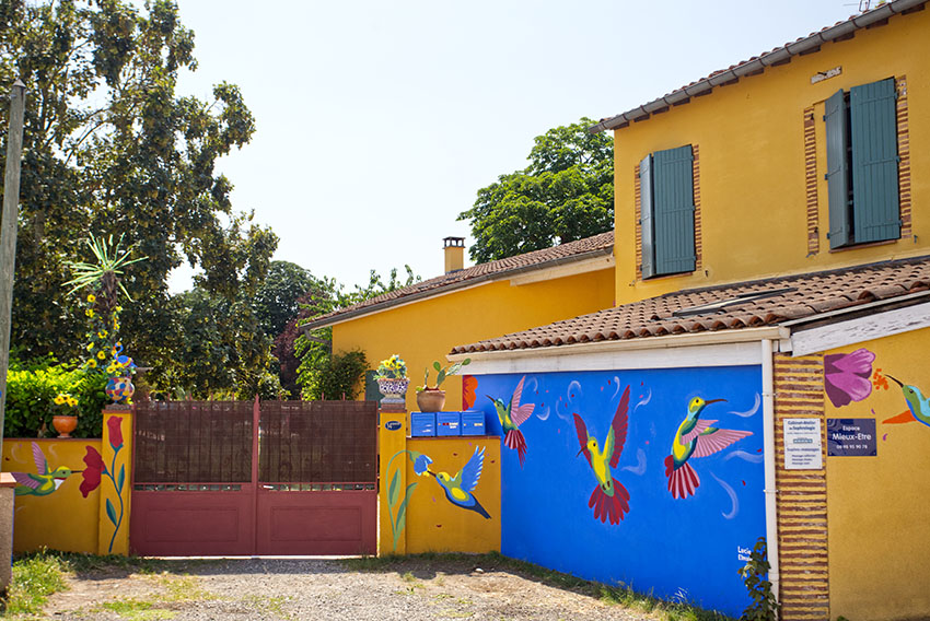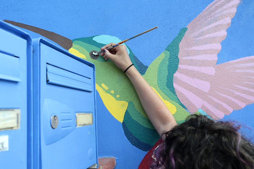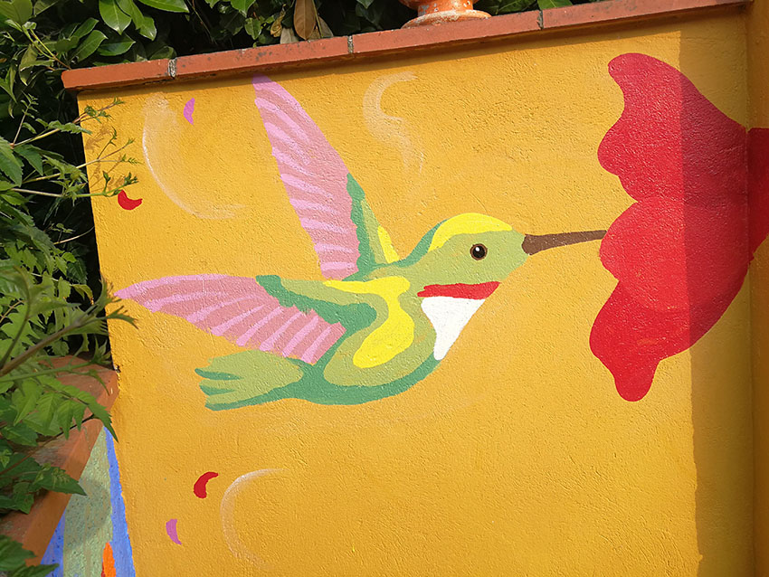 Peinture d'une fresque murale pour le cabinet de Nathalie LEHAIN - Sophrologue Caycédienne.